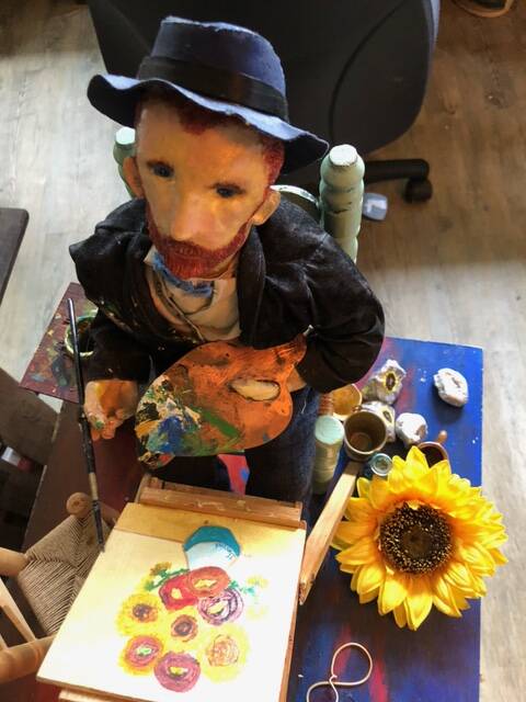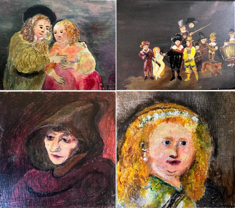 Als poppenmaker en -speler begeef ik mij sinds 2016 ook in de wereld van de beeldende kunst; acryl op doek vind ik daarin het leukste om mee bezig te zijn. Nog leuker vond ik dat mijn poppen kleine schilders werden die als Rembrandt, Vincent van Gogh en Karel Appel het levenslicht zagen en als echte schilders naar hun beroemde voorgangers gingen schilderen en die inmiddels de naam 'kleine schilders' hebben gekregen